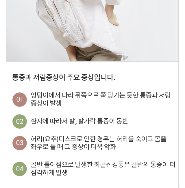 신경이 눌려서 나타나는엉덩이부터 당기고 저리는 괴로운 통증